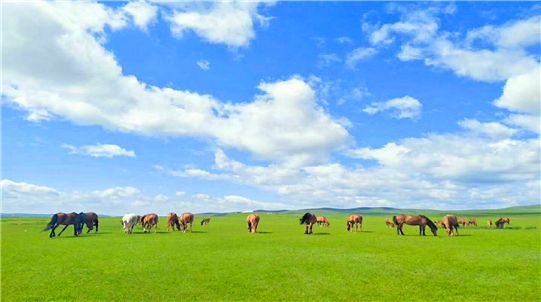 海拉尔出发,驱车前往【呼伦贝尔大草原】穿越草原带您进去草原腹地,感受一代成吉思汗发迹地。呼伦贝尔草原一眼望不到边,微风吹过都能闻到清新的青草泥土味,清澈透亮的蓝天与朵朵白云,绿草如茵,野花遍地,牛羊成群,点点毡房。牧民骑着马儿飞驰而过,绑在敖包旁的神幡随风起舞。在草原上与亲友追逐、奔跑、嬉戏、拍照、打闹,无拘无束,随心所欲。这里的自然、淳朴、原始足以将身心的疲惫一扫而空。驱车深入草原70多公里到达【莫日格勒河】人称天下第一曲水。莫日格勒河是蜿蜒在呼伦贝尔大草原上的一条曲折的河水,两岸芳草遍地,鸟语花香,蝶飞蜂舞,处处马嘶羊咩。这里也是《嘎达梅林》、《快乐大本营》、《爸爸去哪儿》、《寻龙诀》、《狼图腾》等众多影视节目的拍摄地。后驱车沿着草原小路到达【莫日格勒河至高点】眺望莫日格勒河九曲十八湾的美景,看那弯弯曲曲的河流在草原上流淌着,在这里感受那草原河流的秀美。游动草原上的牛群、马群、羊群,很多洁白的蒙古包尽收眼底,构成一幅完美的草原风景画。